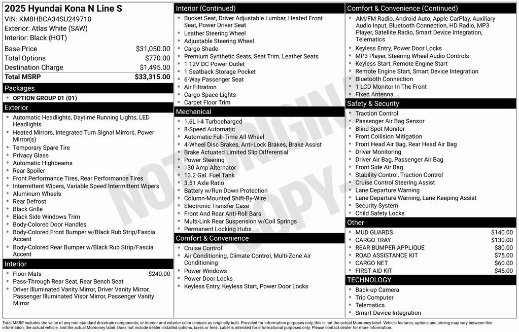 2025 Hyundai Kona N Line S N Line S Atlas White I4 8-Speed Automatic AWD