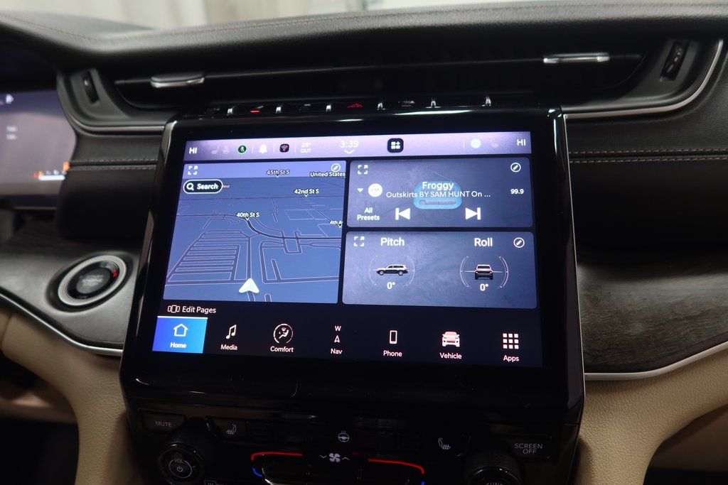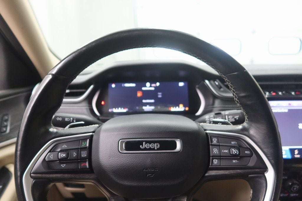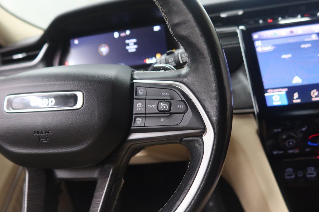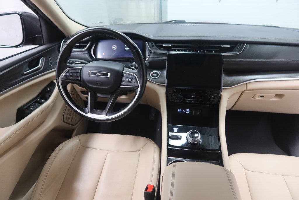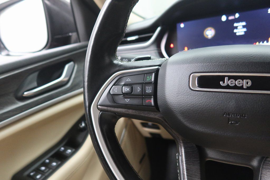 Elevate your driving experience with the premium features of the 2021 Jeep Grand Cherokee L Limited. Enjoy the convenience of the Uconnect 5 Navigation system with a stunning 10.1" touchscreen display, the premium 9-speaker Alpine audio system, and the dual-pane panoramic sunroof that floods the cabin with natural light.
