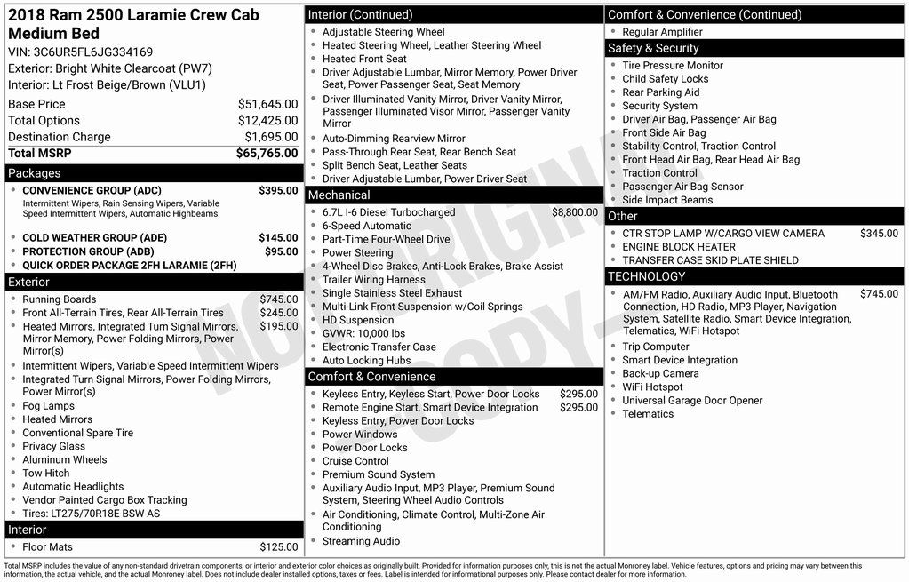 2018 Ram 2500 Laramie Laramie Bright White Clearcoat Cummins 6.7L I6 Turbodiesel 6-Speed Automatic 4WD